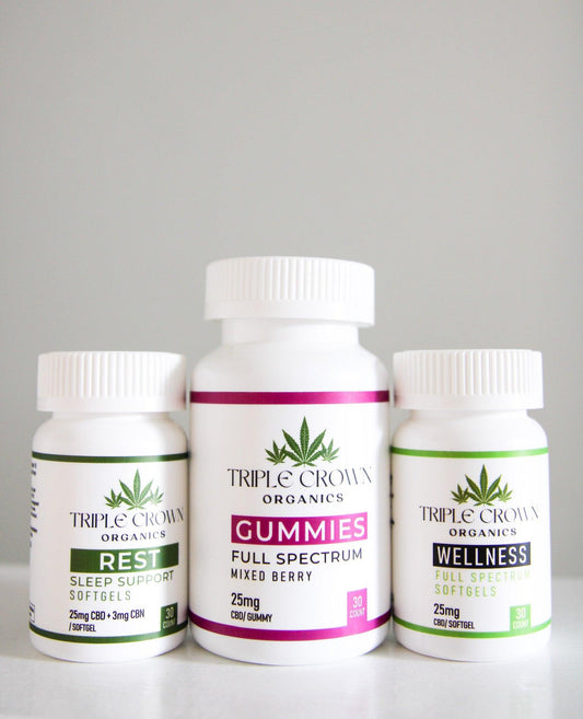Triple Crown Organic CBD products help alleviate stress, anxiety and depression symptoms by utilizing the full spectrum of beneficial cannabinoids without the psychotropic THC.